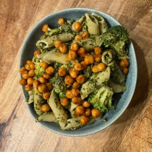 Pasta pesto met broccoli en kikkererwten